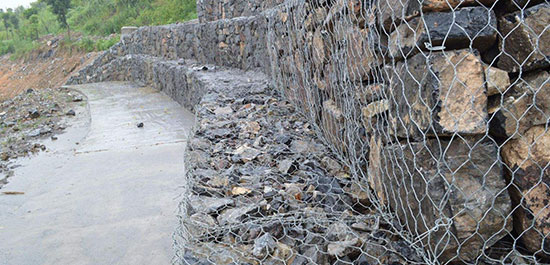 石籠網是使用機器將金屬線材單向搓捻兩周編織的六角形網(六角網) 制成的網箱,厚度在0.15-0.5m(含0.5m),又稱石籠和護墊,石籠網墊由隔板分成若干單元格,為了加強石籠網墊結構的強度,所有的面板邊端均采用直徑更大的鋼絲。
